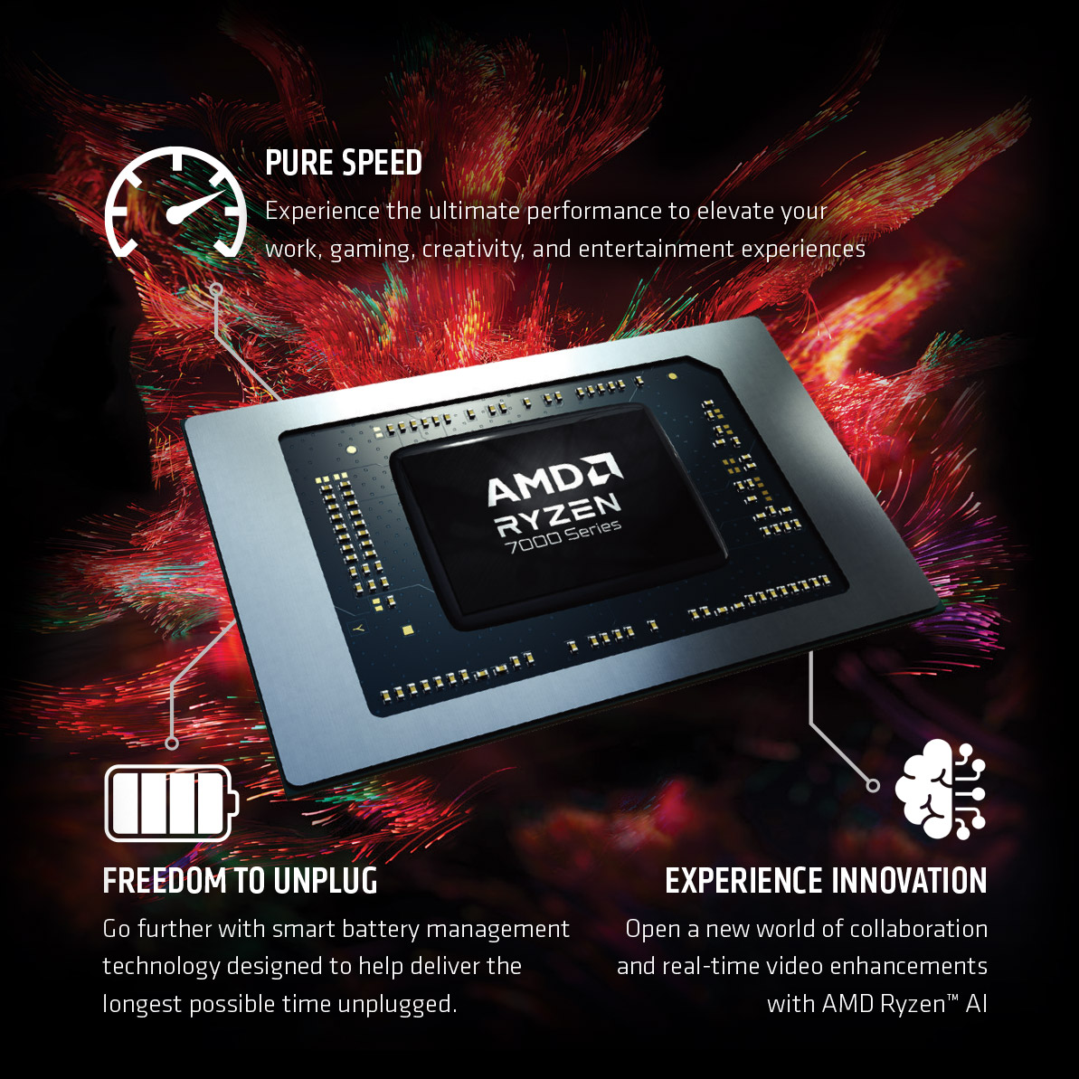 AMD Ryzen™ 7000 Series processors elevate the premium user experience, bringing speed, endurance, and new technologies.